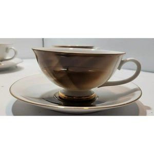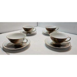 Vtg KRN Handpainted Teacups And Saucers Brown & White China (4) Extremely Rare