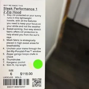 BRAND NEW - HOODED - LULULEMON - slick performance one- 2 ZIP HOOD