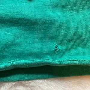 Does have some distressed holes and wear all in pictures not huge but are noted I think it gives it the vintage look of wear