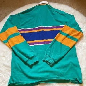Like the orange, purple , blue , white , collar shirt, and main green color so awesome