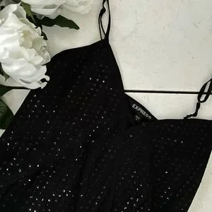 Express Medium Black Jumpsuit Sequin adjustable straps pockets