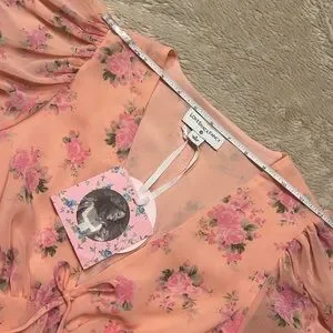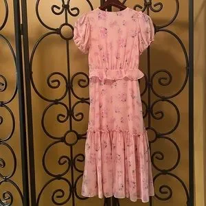Inspired by vintage finds, and the enchanting world of its founder Rebecca Hessel Cohen, LoveShackFancy brings elegant and ethereal femininity to Target for this limited edition dress collection. With soft florals, this romantic dress is a whisper of dream escapes and special moments. The Fleur Dress from LoveShackFancy makes a lovely way to showcase a sense of romance in your everyday style. A melon pink color sets a playful backdrop for the allover pink floral pattern blooming amidst this short-sleeve midi dress. Puff sleeves contribute to the dreamy look, along with faux front ties, ruffle detailing on the waistline lending graceful movement. Side seamless zipper (zipper works perfectly). 100% Polyester/Lining: 100% Polyester. Gift(s) included with purchase. Should you have any questions, please do not hesitate to ask. Thank you for visiting my closet. 💐