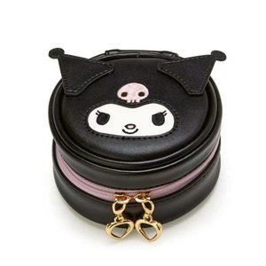Sanrio Kuromi Jewelry Coin Case Round Black w/ Purple Bow Zipper Close Lined