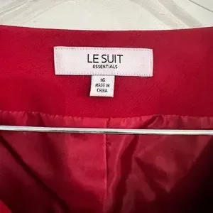 This is a super sharp two piece red skirt suit by Le Suit. This suit has never been worn and retailed for $200.