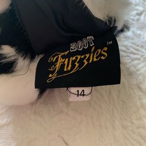 BOOT CUFFS:BOOT FUZZIES BLACK/WHITE ZEBRA LOOK FUR 8”x4” =SZ 14?