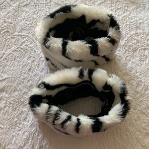 BOOT CUFFS BOOT FUZZIES (1 PAIR) BLACK/WHITE FAUX FUR(ZEBRA?) 8”x 4” WITH BLACK SATIN LINING AND ENCASED ELASTIC NWOT SZ 14