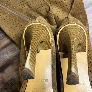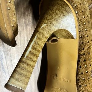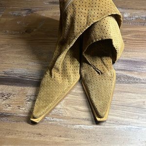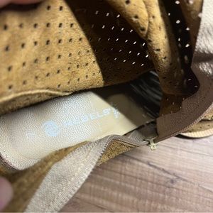 Rebels 7 women’s Boots Perforated Suede Leather Camel Square Toe Heels Wood