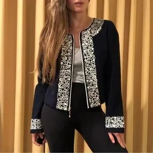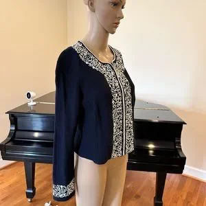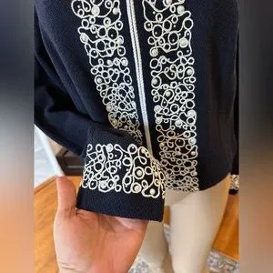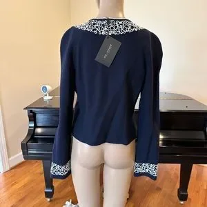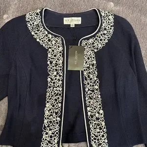 NWT Luxury Rare St John Collection Navy Pearl Embelished Cardigan/Jacket