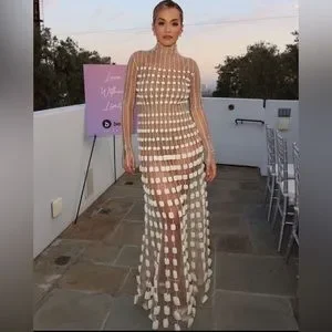 -in amazing condition,never worn,paper tag & size tag attached to garment have some sharpee marks, some of paper tag has come off,was going to have trunk show,wanted to know prices in case tags went missing,decided against trunk show,rope design isn’t all exactly same, some parts come out little,much of embelishments done by hand