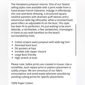 FP and Selkie For L’ Amour Hamptons jumpsuit, size XS; new
