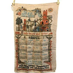Vtg 1971 Bless This House Linen Calender Wall Hanging House Prayer Angels New Ho