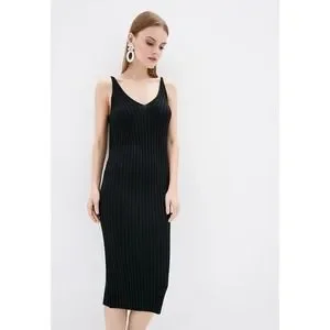 DASTI Knit Black Dress Ribbed Bodycon Midi Sweater Sleeveless V-Neck Knitted