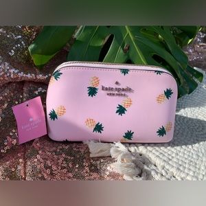 NWT Kate Spade Staci Pineapples Cosmetic Bag PLUS BONUS NWOT Sleep Mask!