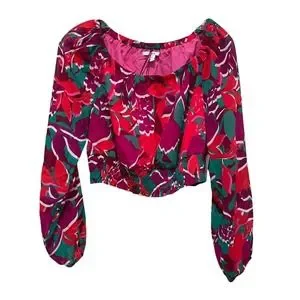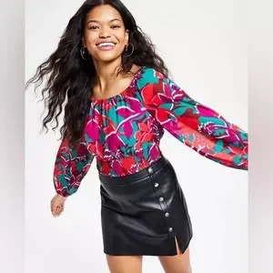 Bar III Printed Smocked-Hem Peasant Top Women’s Size Medium New