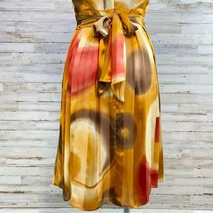 Suzi Chin by Maggy Boutique Silk Dress Womens Size 12 Gold Red Print Tie Waist