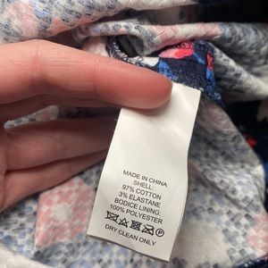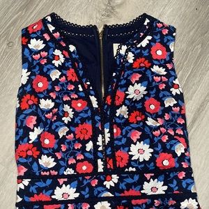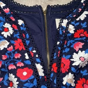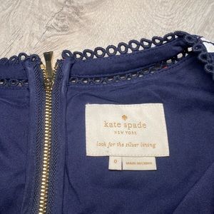 Kate Spade Shore Thing Daisy Jacquard Sheath Dress in Rich Navy. The beauty of this piece? All you have to do is decide if you want to dress it up with heels and sparkly accessories, or down with cute sneakers. 97% Cotton, 3% Spandex. Center back zipper. Size 0 measures about 17 inches pit to pit, 33.5 inches long.