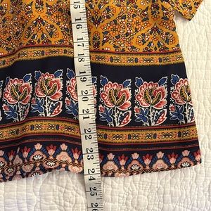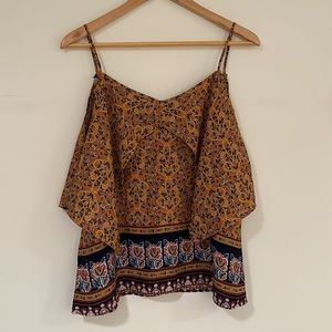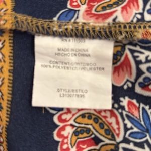 This Lily White gold and blue, open shoulder blouse is GORGEOUS on! It’s a size Large, but it runs a bit small. I wore it in the Spring and Summertime and even in Fall. Looks great with a blazer!