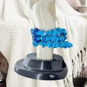 Genuine Turquoise Triple Layer Beaded Stretchy Bracelet