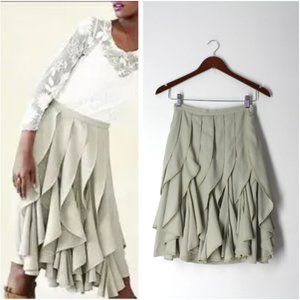 Varun Bahl by Anthropologie elegant ladies skirt, style- Icefall Skirt. From Anthroplogie description: Vertical layers of silky waves fall from waist to knee on Varun Bahl's softly hued skirt, in a departure from the every day ruffle. Pleated, ruffled silhouette, side zip