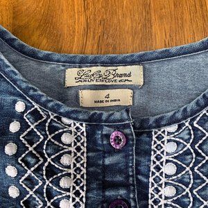 LUCKY BRAND Girls Chambray Dress 4 4T Embroidered Denim Toddler Girl Embroidery
