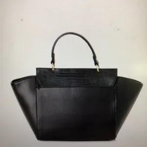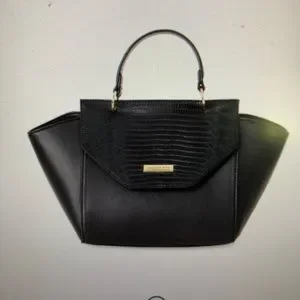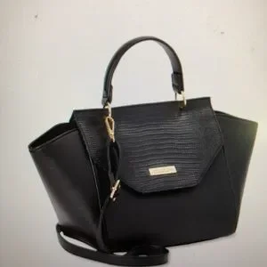 London Fog casual silhouette vegan leather satchel with removable strap.