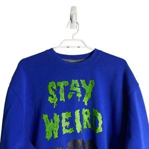 Stay Weird Blue Graphic Crewneck Relaxed Sweatshirt