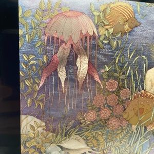 Nude mermaid foil art print metallic, beautiful art with a metallic shine, under the sea creatures, fantasy, mythology