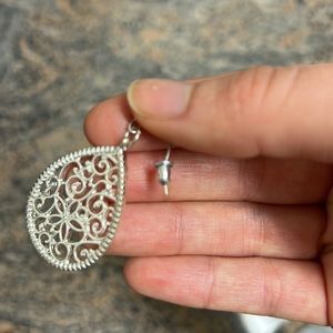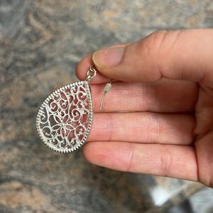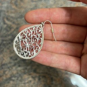 Silvertone Teardrop Dangle Earrings w/ swirly fun design throughout