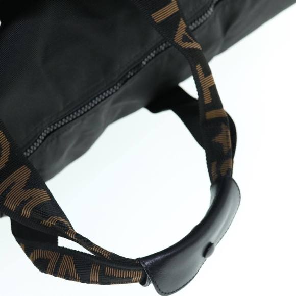FENDI Boston Bag Nylon 2way Black Brown Auth bs11573