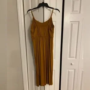 Old Navy Tan Spaghetti Strap Sundress is midi length, with two side slits and adjustable spaghetti straps. This dress is soft and comfortable. Size petite small. Worn once.