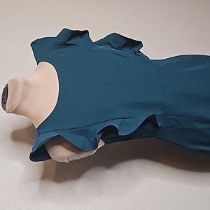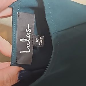 NWT Lulu's Medium Hearts Aflutter Ruffled Bodycon Midi Dress Dark Green in excellent new condition.