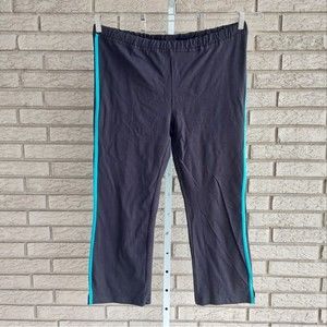 Woman Within Black Cropped Athletic Pants w/Aqua Stripe 14/16 PETITE NWOT