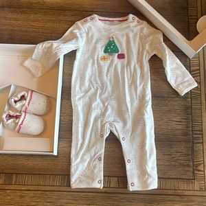 Alberta 3-6 month Christmas onesie set. Booties / rattle NIB