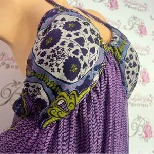 Wicked dress paisley print purple green blue white long maxi halter padded top size medium. Can be worn many ways the hater criss cross the front ect. Stunning long gown boho style πππ like new.