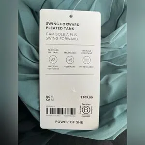 Athleta Swing Forward Pleated Tank Top Size Medium Teal/Black NWT Retail $109