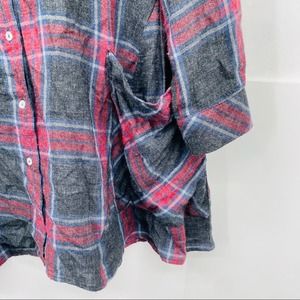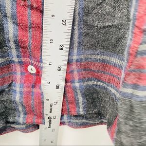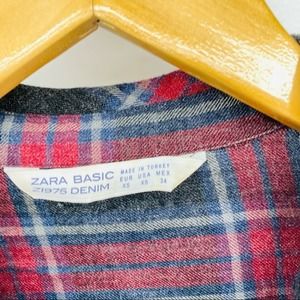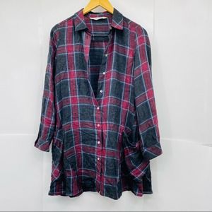 Zara Red Gray Plaid Print Large Pocket Tunic Top XS