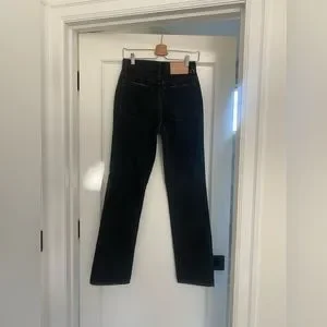 Ulla Johnson Agnes Jeans in size 27. The color is a darker off black. 100% cotton. Love these jeans and purchased them in a smaller size. Worn less than a handful of times.