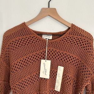 Long rust colored oversized sheer open-knit sweater. New with tags.