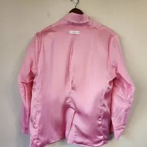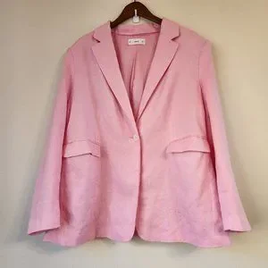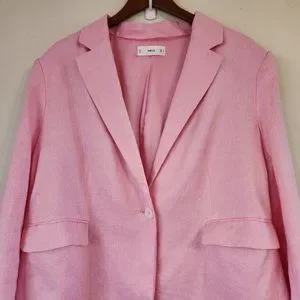 Elevate your wardrobe with this stunning MNG by Mango Women's Blazer Suit. Perfect for any occasion, this blazer suit comes in a beautiful pink color that adds a touch of femininity to your outfit. The blazer is made from 100% linen, giving it a lightweight and tailored look that is both classic and contemporary. Featuring a single-breasted cut with one-button front closure, this blazer suit comes with a notch lapel style and long sleeves with no button on the sleeve. It also has two pockets for added convenience. The blazer suit is fully lined with 100% linen and is dry clean only. This blazer suit is perfect for office wear, business casual, and any other occasion where you want to look your best.