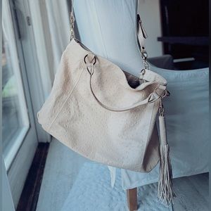 LARGE AUTHENTIC CRÈME COLORED LEATHER OSTRICH BAG
