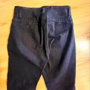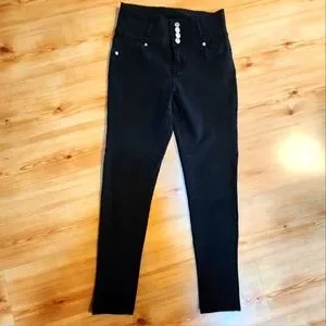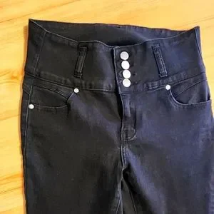 High Waisted, Four-Button and Zippered Front Closure, Straight Legged, Black Jean Leggings, In Excellent Condition Stretchy, Comfortable, and Figure Flattering 😀