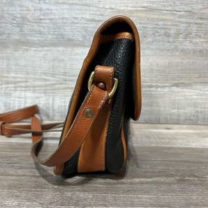 DOONEY & BOURKE Vintage Equestrian Leather Crossbody Purse Bag Black Tan