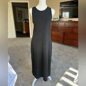 BANANA republic twist racer back dress, side slit, black pin stripe, small