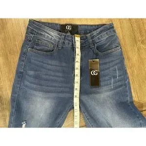 Elevate your style with these NWT OG Oyster Guy skinny leg stretch jeans. The distressed denim fabric and 5-pocket design with button and zipper accents make these jeans perfect for any casual occasion. The mid-rise waist and cotton blend material ensure comfort and easy care, with a medium wash fabric that makes them suitable for any season.