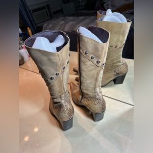 Janet & Janet Tan Leather studs & snake skin Distressed Boho Western Boots 36