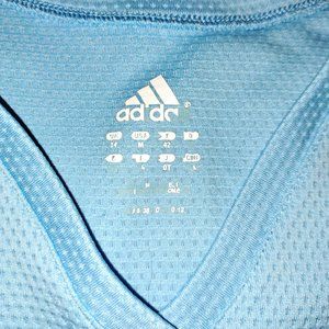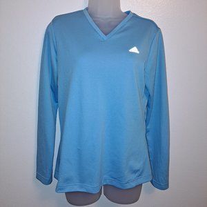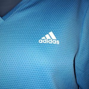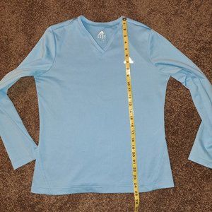 Baby Blue Adidas Breathable Mesh-like Material ,V Neck Long Sleeve Performance Running Shirt With Reflective Adidas Logo,Size Medium Pre-owned condition