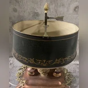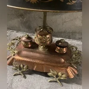 Hammered Copper French Bouillotte Lamp Handpainted Shade W/ Built In Inkwell WOW