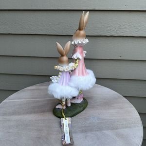 Easter Ballerina Bunnies Figurine Fluffy Tutus Easter Eggs Two Precious Bunnies