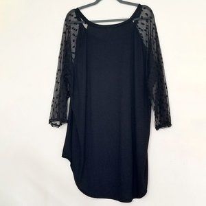 Torrid Black Raglan Blouse with Polka Dot Mesh 3/4 Sleeves - Size 4