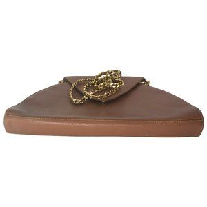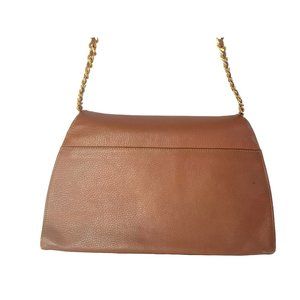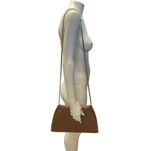 Vintage INC Purse Chain Link Strap Genuine Leather Uruguay Bag Tan Brown Camel
